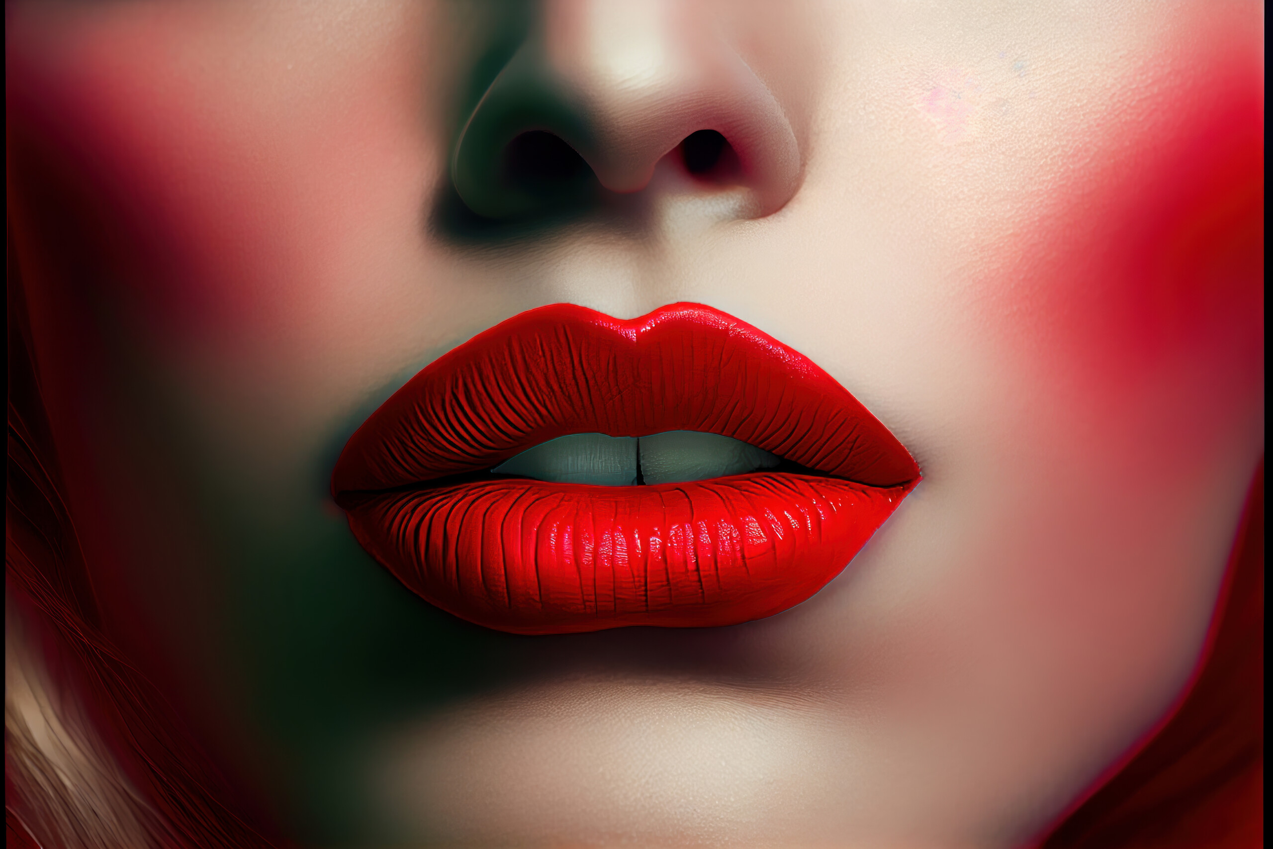 Extreme Closeup of a perfect lips of women with red lipstick gen